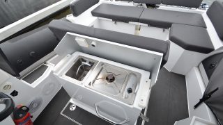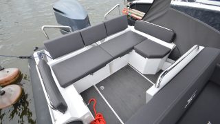 Integrerat kök i soffmodulen (gasol, diskho, kylskåp 40l), fällbar kaptenssoffa och borttagbart bord, aktersoffa (4+1 personer) med soldyna dubbel solbädd/koj, samtliga dynor, rymlig kabin för 2 vuxna + 2 barn (330cm lång), LED-takbelysning, läslampor, ljusslingor, 12V uttag + USB uttag, högtalare med förstärkare och bluetooth koppling, vindrutetorkare (2 hastigheter), soldyna fördäck, självdränerande och automatisk länspump, bränsletank aluminium 250 l, batteriladdare C-Tec, vattentank 40 l, förpeke i rostfritt stål, badstege och dusch, däcksbelysning, undervattensbelysning.