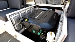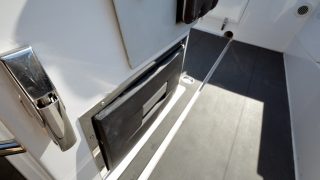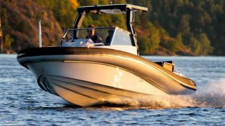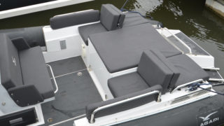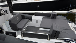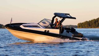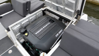 Utöver standardutrustningen är detta exemplar utrustat med Scandinavian Edition, Volvo Penta D3 – 220 med 380 gångtimmar iPadfäste och vattentoalett.
