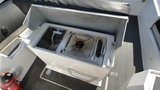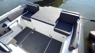 Integrerat kök i soffmodulen (gasol, diskho, kylskåp 40l), fällbar kaptenssoffa och borttagbart bord, två stolar i aktern, samtliga dynor, rymlig kabin för 2 vuxna + 2 barn (330cm lång), LED-takbelysning, läslampor, ljusslingor, 12V uttag + USB uttag, högtalare med förstärkare och bluetooth koppling, vindrutetorkare (2 hastigheter), soldyna fördäck, självdränerande och automatisk länspump, bränsletank aluminium 250 l, batteriladdare C-Tec, vattentank 40 l, förpeke i rostfritt stål, badstege och dusch, däcksbelysning, undervattensbelysning.