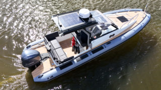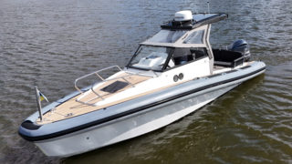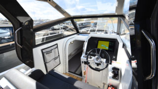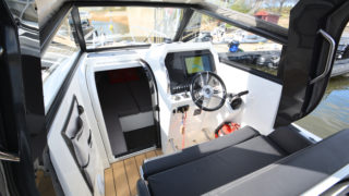 Kapell för T-top, Komfortpaket med kylskåp, färskvatten med dusch och gasplatta, Stereo, Däckbelysning, Webasto 2000 värmare, Bogpropeller, Stävgummi, Garmin 12″ plotter, radar, strålkastare LED ramp.