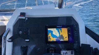 Extrautrustad med navigationssystem från Simrad (NSS12”), bogpropeller och utrustningspaket ”Scandianavian Edition” vilket innefattar T-top i kolfiber (Integrerat körkapell och sidokapell), förberett för heltäckande kapell/soltak, topplanterna, sidolanterna, signalhorn samt förberett för tillval, dimbar LED-belysning, spotlights). Kapell för T-topversionen (bakväggen), pentry med tryckvattensystem, kylbox och spis, värmare med defroster från Webasto.