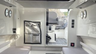 Simrad 9″ GPS/ plotter, Yamaha engine display, Zipwake automatiskt trimsystem, bogpropeller, Fusion stereo med två högtalare, dieselvärmare från Webasti, pentry, kylbox draglåda, undervattensbelysning, bäddsats till fördäck och akterdäck, mm