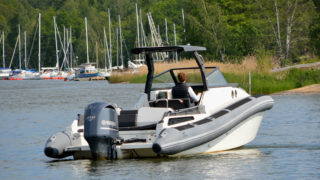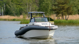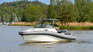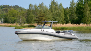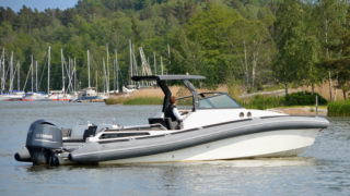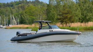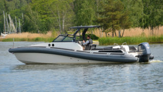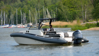 RIB-teknologin (Rigid Inflatable Boat) gör 950:an fantastiskt trygg, rolig att köra och enkel att hantera oavsett väder och fart. Med sina drygt 32 fot passar båten även för de öppna haven och de unika köregenskaperna består även med maxlast vilket innebär upp till 12-14 personer.