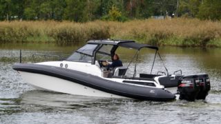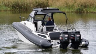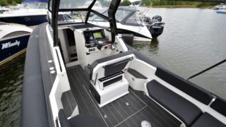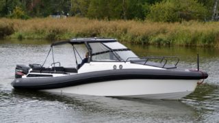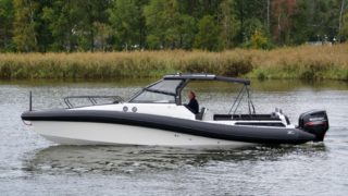 RIB-teknologin (Rigid Inflatable Boat) gör 950:an fantastiskt trygg, rolig att köra och enkel att hantera oavsett väder och fart. Med sina drygt 32 fot passar båten även för de öppna haven och de unika köregenskaperna består även med maxlast vilket innebär upp till 12-14 personer.