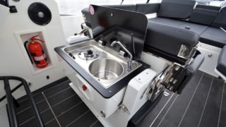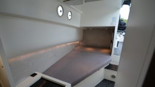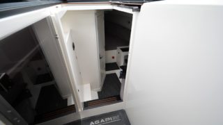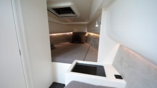 Utrustning: Simrad 12″ plotter, bogpropeller, kapell, Flexiteak, toalett, värmare, färskvatten, dusch på badbrygga, kylbox, diskho, gasspis, t-top, bord i sittbrunn, dimmbar belysning, LED strålkastare, Fusion högtalare, Ankarspel i aktern.