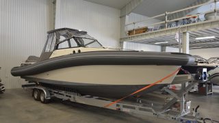 RIB-teknologin (Rigid Inflatable Boat) gör 950:an fantastiskt trygg, rolig att köra och enkel att hantera oavsett väder och fart. Med sina drygt 32 fot passar båten även för de öppna haven och de unika köregenskaperna består även med maxlast vilket innebär upp till 12-14 personer.