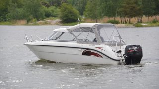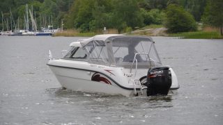Endast 17 gångtimmar. 6 års garanti på motorn och 1 år på båten. Extrautrustad med Suzuki DF80hk, Komfortpaket, Sportpaket och Garmin 721 inkl ekolod och sjökort.