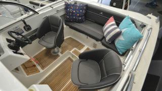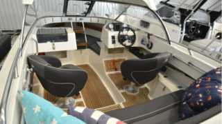 Dragg, komplett dynsats, Garmin echoMAP 50 DV, lanternor, vindrutetorkare, tampar, flaggstångshållare, trimplan och badstege.