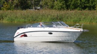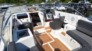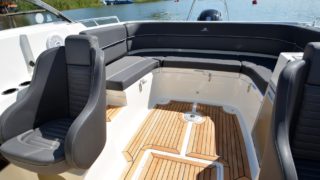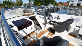 Bogpropeller, fullteak, 2-batteriesystem, kylskåp, vattentoalett, kapell, kapellgarage, hydraulstyrning, rostfri rutram, trimplan, bord med fot och soldyna, tryckvatten, pentrymodul, komplett dynserie, LED durklbelysning m.m