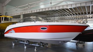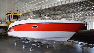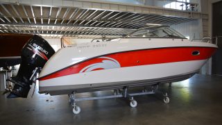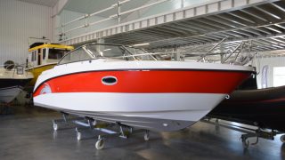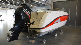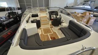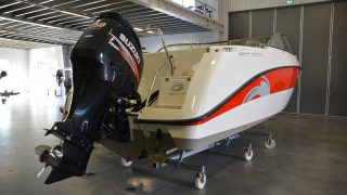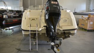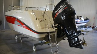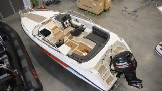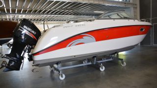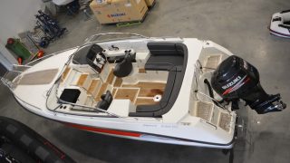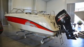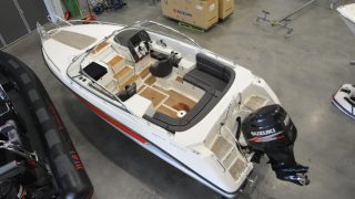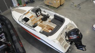 Detta exemplar är extrautrustad med bottenmålning, röd folierad, Suzuki 250 hk, vattenskidbåge, hamnkapell, Garmin 820 XS med ekolodsgivare och sjökort.