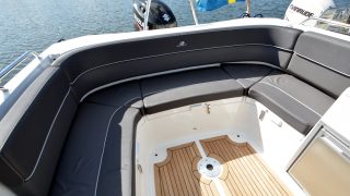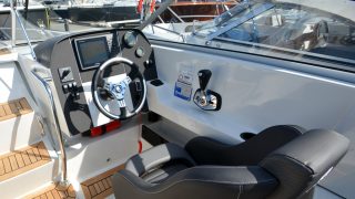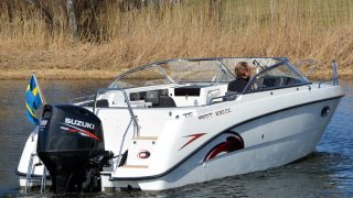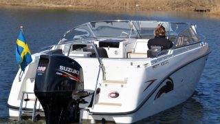 På båten sitter ett mycket bra motoralternativ från Suzuki, deras lätta, tysta och kraftfulla 200hk, nya modellen med key less startfunktion och elektroniskt reglage, digitala instrument, rostfri stålpropeller, 213 timmar. Med denna motor når man en toppfart om ca 38-40 knop och lagom och ekonomisk marschfart 27-28 knop.