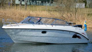 Extrautrustad med: Garmin 820 xs med ekolod samt sjökort, hamnkapell, vattenskidbåge, bottenmålning, flaggstång med flagga, stereo med två högtalare (bluetooth) kokplatta wallas 800, webasto värmare, myggnät.