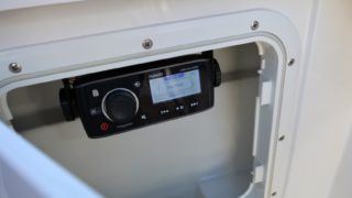 Garmin plotter, Hamnkapell, dieselvärmare från Webasto, Fusion stereo med högtalare, Batteriövervakning, automatiska trimplan, bottenmålning.