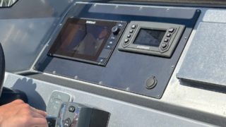 Utrustad med Simrad NSS9″ GPS/plotter, sjökort, ekolod, stereo med två högtalare, targabåge, bottenmålning, automatiska trimplan, dynsats, Securmark stöldskyddsmärkning, badstege, lanternor, motorlås och förtöjningspaket.