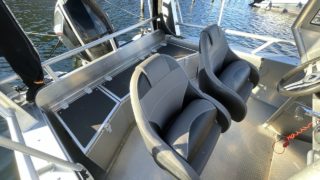 Utrustad med Simrad NSS9″ GPS/plotter, sjökort, ekolod, stereo med två högtalare, targabåge, bottenmålning, automatiska trimplan, dynsats, Securmark stöldskyddsmärkning, badstege, lanternor, motorlås och förtöjningspaket.