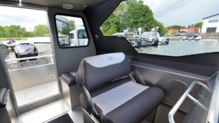 Utrustad med Webasto värmare, Simrad 12 tums plotter, radar, ekolod, stereo, dämpad förarstol, bottenmålning, taklucka, ankarspel i aktern med fjärr, 2 x vindrutetorkare, automatiska trimplan.
