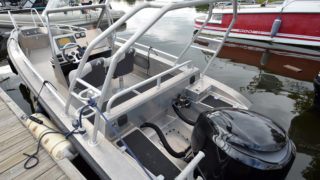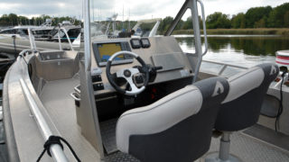 Utrustad med 10 tums Garmin plotter med sjökort, sökarljus, trimplan, pulpetöverdrag, länspump, led-lanternor, hydraulstyrning, 2 x digitala instrument, elektroniskt reglage, självläns, bottenmålning, securmärkt skrov, handskfack, 12v uttag.