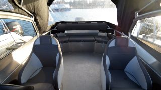 Simrad NSS 16 tum med sjökort (ny), Simrad 4g bredbandsradar (ej på bild, men monteras ny till lev) motordata i plottern, Simradstereo med två högtalare (bluetooth streaming) motorlås, akterkapell, bottenmålad, klass 3 ögla, låskätting, trimplan med indikatorer, stolsöverdrag, M400, LED-lanternor, elektroniskt reglage, flera 12 v uttag, dynsats, 2 x vindrutetorkare, tampar, fendrar, ankare, brandsläckare.