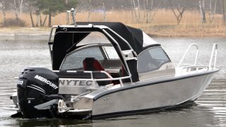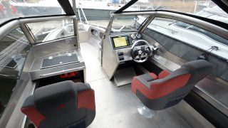 Utrustad med: Bottenmålning, 2 x vindrutetorkare, kapell, Simrad 12 tums plotter med ekolod samt sjökort, stereo med 2 högtalare och bluetooth, trimplan, hydraulstyrning, badstege, ankarspel i aktern, elektroniskt reglage, 12 v uttag, led-lanternor, securmärkning båt och motor.