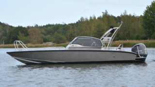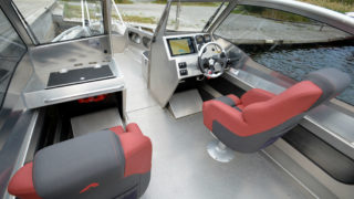 Utrustad med: 2 x vindrutetorkare, kapell, Simrad 12 tums plotter, stereo med 2 högtalare och bluetooth, automatiska trimplan, hydraulstyrning, badstege, 12 v uttag, led-lanternor, securmärkning båt och motor.