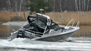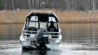 Båten är motoriserad med en Mercury Verado 300. En modern fyrtakts motor på hela 300 hk som gör att båten toppar över 50 knop. Ca 177 gångtimmar.