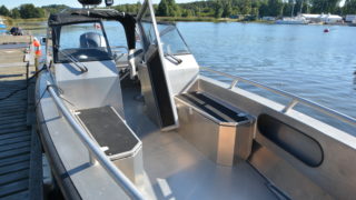 Utrustad med: bottenmålning, kapell, trimplan, Raymarineplotter, radar, sökljus, badstege, vindrutetorkare, dynor, lanternor, klass 3 ögla, 12v uttag, tampar o fendrar.