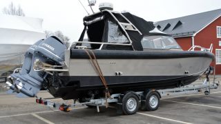 Utrustad med: Bogpropeller, Garmin 7012 samt radar, autopilot, vhf, Fusion stereo med högtalare, ankarspel i aktern, fjärrstyrt sökarljus, bottenmålning, targabåge, trimplan, kapell, 2 x vindrutetorkare, dynor, klass 3 ögla, lanternor, 12 v uttag.