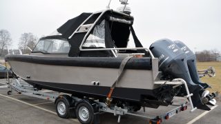 Robust och rejäl aluminiumbåt från Svenska Anytec. En av deras större modeller med mycket utrustning, rätt motorer med få timmar.