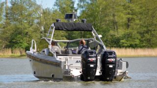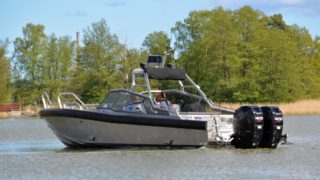 Bestyckad med 2 x Mercury Verado 400, levereras nyservad med va 270 gångtimmar.