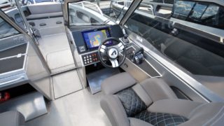 Utrustad med: Simrad NNS16, radar, gps kompass, Sonic hub stereo med 4 högtalare, sökljus x 2, kylbox, bord, solbädd, bogpropeller, ankarspel i aktern, Joystick system, targabåge, helkapell, trimplan, hydraulstyrning, vindrutetorkare, dynor, dämpade stolar, LED lanternor, badstege, badplattform, klass 3 ögla.