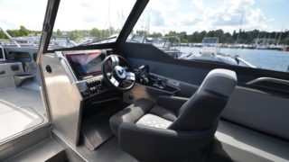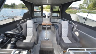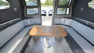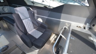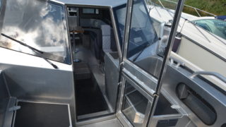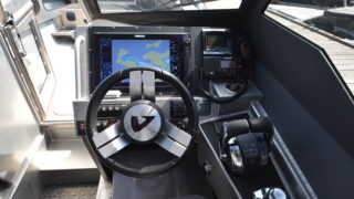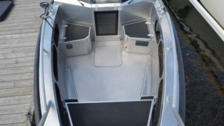 Ankarspel med fjärr, Värmare, Joystick med skyhook, Bord, VHF, Simrads stora GPS med radar, Trimplan, Ekolod, Sökarljus, arbetsljus bakåt.