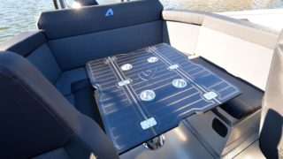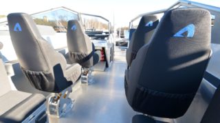 Helkapell, sprayhood, targabåge, automatiska trimplan Zipwake, hydraulstyrning, vindrutetorkare, dynsats (akter), LED-lanternor, 12v uttag, badstege, självläns, bottenmålning, klass3 ögla, dämpade stolar 2 st, M400 behandlat skrov, Simrad 12 tums plotter med ekolod, brandsläckare, securmärkt, förtöjningspaket.