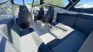 Utrustad med bland annat bogpropeller, Simrad NSS16″ EVO3, sjökort, Simrad Bredbandsradar, Simrad OP50 fjärrkontroll, Simrad ekolod, Zipwake trimsystem, Stereo från Fusion, fjärrstyrt ankarspel, 4 x dämpade stolar, u-soffa, körkapell, hamnkapell 2 x vindrutetorkare, vattenskidbåge, bottenmålning, 3 x batterier, badstege osv.