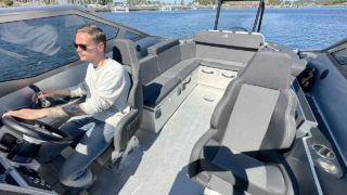 Utrustad med bogpropeller, Simrad NSS12″ EVO3 inkl. sjökort, Zipwake trimsystem, Power assist pro, värmare (Webasto 4kw), stereo (Fusion blackbox), 2 x dämpade stolar, u-soffa, solbädd och dynsats, körkapell och stolsöverdrag, 2 x vindrutetorkare, vattenskidbåge, bottenmålning, bord med statuv, kylbox 12v, badstege osv.