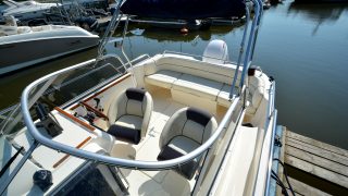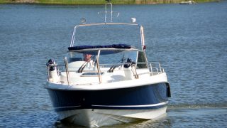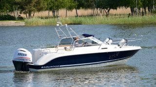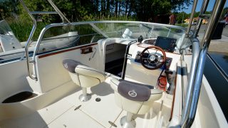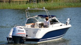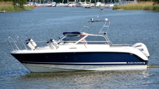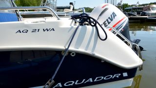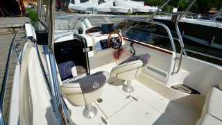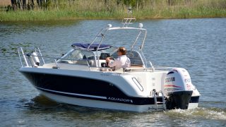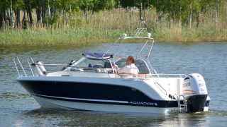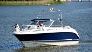Aquador 21 WA är en mycket trevlig båt med stora sociala ytor och bra sovmöjligheter. Med massor av kraft till hands och ett skrov som är vässat för snabb, sportig körning och en enastående känsla av kontroll. Du har god överblick över instrumenten och havet framför dig. Dessutom får du assistans av en GPS som hjälper dig att hålla koncentrationen på sjön.