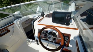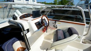 Utrustad med bland annat: Kompass, lanternor, elektroniska mätinstrument, vindrutetorkare, 12v uttag, brandsläckare, startspärr, bord vid aktersoffan, överdrag till stolar, sökarljus, mugghållare, fenderhållare på fördäck mm.