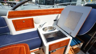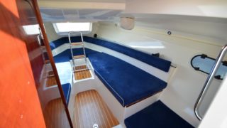 Utrustad med: blåa skrovsidor, teak på akterdäck och skarndäck, körkapell, hamnkapell, komplett med dynor, iläggsskivor samt solbädd, kylskåp, spishäll med 2 plattor, sötvatten med diskho, gångvärme, dieselvärmare, toalett med septiktank, 2 x vindrutetorkare, trimplan, nyare Garmin 7 tums plotter med sjökort, bord med fot, 2 öppningsbara takluckor, stickkoj.