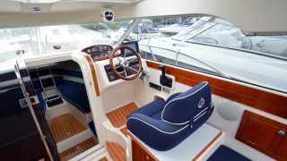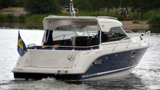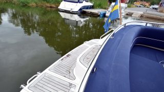 Utrustad med: bottenmålning, mörkblå skrovsidor, teak, gångvärme, C-tek batteriladdare, keramisk spishäll, kylskåp, färskvatten, stereo, Garmin 721 (ny 2017), trimplan, akterkapell, bäddsats akterdäck, värmare, 2 x vindrutetorkare