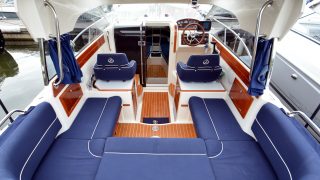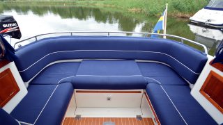 Bra planerad båt med stor förpik med sovplatser för 2 personer samt ytterligare två i aktersoffan. Toalett i separat utrymme.