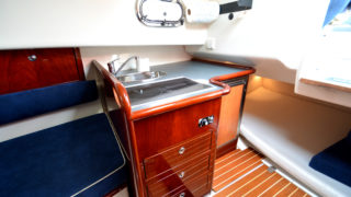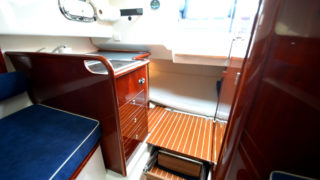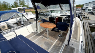UTRUSTNING: Bogpropeller, trimplan, Bäddbar aktersoffa, CD-stereo, Dieselvärmare samt gångvärme, Diskho m färskvatten, Dubbla batterier, Dusch på badbrygga, Däckslucka, Elektriskt ankarspel, Elektroniska reglage, GPS, Garmin 3010 + sjökort, Kylskåp, Landström, Pentry med keramisk häll, Rostfri rutram/grabbräcke, Servo- & hydraulstyrning, WC med septiktank, Sökarljus, Komplett Teak, Teakbord i sittbrunn, Varmvattensystem, Vitt skrov, Överdrag soffa/stolar