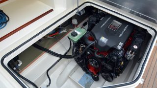 Båten är motoriserad med en Volvo Penta 5,7 Gxi som har gått ca 650 timmar.