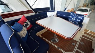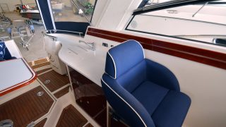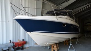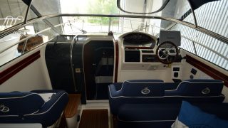 Extra utrustad med: Garmin 7012 med sjökort, värmare, ankarspel i aktern, bogpropeller,blått skrov samt CD/Stereo.
