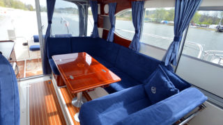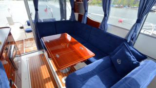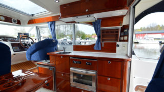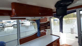 Utrustad med bogpropeller, akterpropeller, ankarspel i aktern, stereo, sökarljus, värmare, gångvärme med defroster, Raymarine plotter med radar, autopilot, Efoy-bränslecell, trimplan, varmvattenberedare, dusch inne och ute, toalett med tank, keramisk spishäll, ugn, fläkt, kylskåp, tv med tv-antenn, fullteak, akterkapell, mattor, soffa akterdäck med dynor, bord, borttagbara dävertar i aktern, förtöjningsgods, 12v uttag i midcabin, landström med laddare m.m.