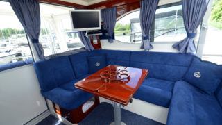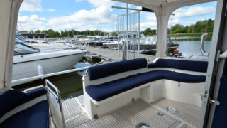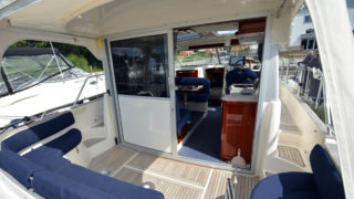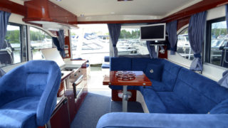 Väldigt bra utrustad med bla: bottenmålad med epoxibehandling, marinblåa skrovsidor i bra skick, ankarspel i för och akter, bogpropeller, häckpropeller, värmare, nyare Raymarine 12 tums plotter med Raymarine Quantum radar, fullteak, cd-stereo med 4 högtalare, varmt och kallt vatten med dusch inne och på badbryggan, landström med laddare, elverk med få timmar, solceller på tak med övervakningspanel, sökarljus, ugn, spis, fläkt, kylskåp, wc med tank, bord ute och inne, obs nyare layouten på akterdäck med l-soffa, akterkapell, trimplan, tv/dvd med tv-antenn, bäddsats i salong, mörkläggningskapell för rutorna, mattor, peke i fören.
