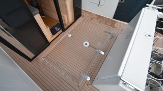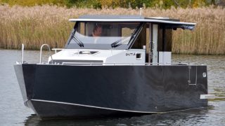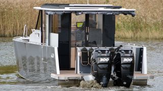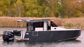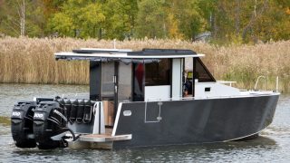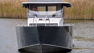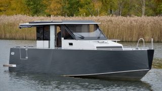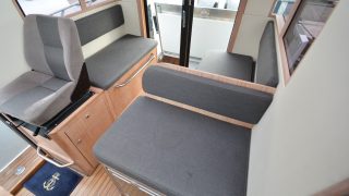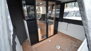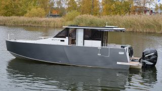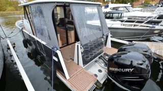 Båten är tillverkad helt i aluminium både överbyggnad och skrov. Durk utvändigt i flexiteak, träinredning med stora glasrutor och panoramaglastak. Övernattningsbar för fyra personer, fördelat på två i fören och två under akterdäcket som lyfts med ett knapptryck samt akterkapellet uppfällt så får man ombonat för övernattning.
