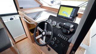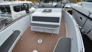 Utrustad med: Mörkgråa skrovsidor, webasto värmare, ny plotter (Garmin 7412), bogpropeller, flexiteak, fullkapell akter, taklucka, toalett med septiktank, pentry med 2-lågig gasolspis, diskho med tryckvatten (endast sjövatten), kylskåp, teakbord till akter och fördäck, dimbara spotlights i tak, utvändig ledbelysning, dämpad förarstol, 2 x vindrutetorkare, elektriskt höj och sänkbar instrumentbräda, tv, solceller på tak, öppningsbara sidodörrar i skrovet, badstege, stävgummi, pop-up knapar, levereras med tampar och fendrar