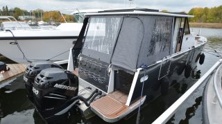 2 x 300 Mercury Verado från 2016, endast 35 h. Utrustad med värmare (Webasto), ny plotter (Garmin 7412), bogpropeller, flexiteak, fullkapell, toalett med septiktank, pentry, tryckvatten (endast sjövatten), kylskåp, teakbord, tv, solcell på tak, mm