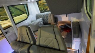 Utrustad med: Bottenmålning, trimplan, Garmin 12” plotter, dubbla batterier, kylskåp, bord i fören med solbädd, röda hamnkapell, vattenskidbåge, toalett med tank, sötvattensystem, durkbelysning, stävgummi, fusion stereo, webasto dieselvärmare, bogproppeller.
