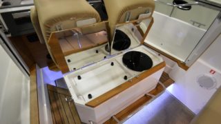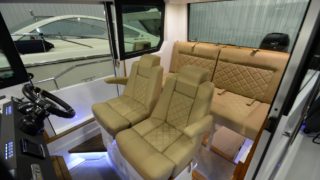 Bra utrustad med: Nya dynor utvändigt både i för och akter, bottenmålning, akterkabin, bogpropeller, trimplan, Garmin 10 tums plotter, Garmin radar, sökarljus med fjärrkontroll, stereo med bluetooth, ankarspel i aktern, toalett med septiktank, vattensystem, spisplatta, kylskåp, soldynor i fören, bord i fören, hamnkapell till fören, aktern och taket, soltak, dubbla batterier, elektroniskt reglage, Mercury 5′ Vessel view, Webasto värmare, signalhorn, led-durkbelysning, motorlås, tampar och fendrar