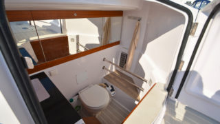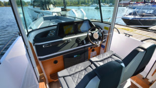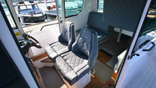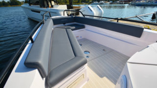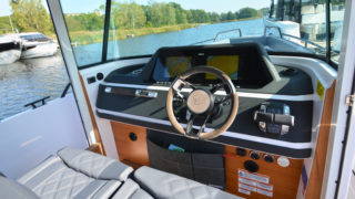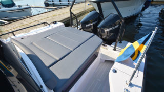 Premium Paket, Akterkabin inkl soldynor, kapellskydd, Dynfärg – Grå (Storm), Komfort Paket, Brabus Line Trim Paket, Skrovfärg – Vit, Mercury uppdateringspaket, Trimplan med joystick, Valnötsdurk i kabin, Elektriskt sökarljus, Takräcke, Fönsterskydd, Vattenskidbåge, Toalett med septictank, Landström med batteriladdare, Bogpropeller, Undervattensbelysning, Dieselvärmare (Webasto AT3900), Stävgummi/Stävskena, Esthec teak paket – Platinum/White, 2x Simrad Plotter GO 12 Glass cockpit, Simrad Ekolod, Simrad Radar Halo20+, Fusion entertainmentsystem, Fusion uppgradering 1, Fusion uppgradering 2, Säkerhetspaket, Ankarspel akter.